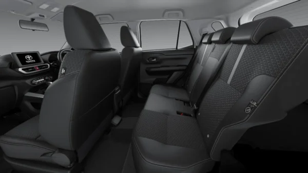 The Toyota Raize is a nimble and compact SUV with a bold, sporty design and a turbocharged 998cc 3-cylinder engine delivering 140 Nm of torque. Equipped with a D-CVT transmission, it offers smooth acceleration, excellent fuel efficiency, and superior ride comfort thanks to its advanced suspension platform. The spacious interior features subtle LED lighting and ergonomic design for both driver and passengers, while large windows and an elevated driving position ensure outstanding visibility. With six SRS airbags, Vehicle Stability Control (VSC), and clearance sonar, the Raize provides next-level safety for every journey. Available in vibrant monotone and two-tone colour options, this compact SUV blends dynamic performance with style.