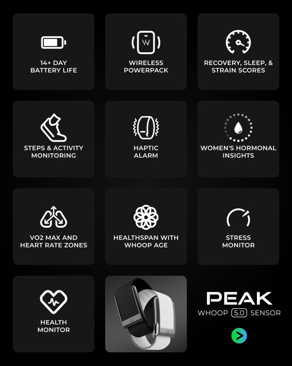 Whether you’re pushing your physical limits or optimizing your recovery, WHOOP 5.0 Peak delivers elite analytics to help you perform at your best and live longer, healthier.